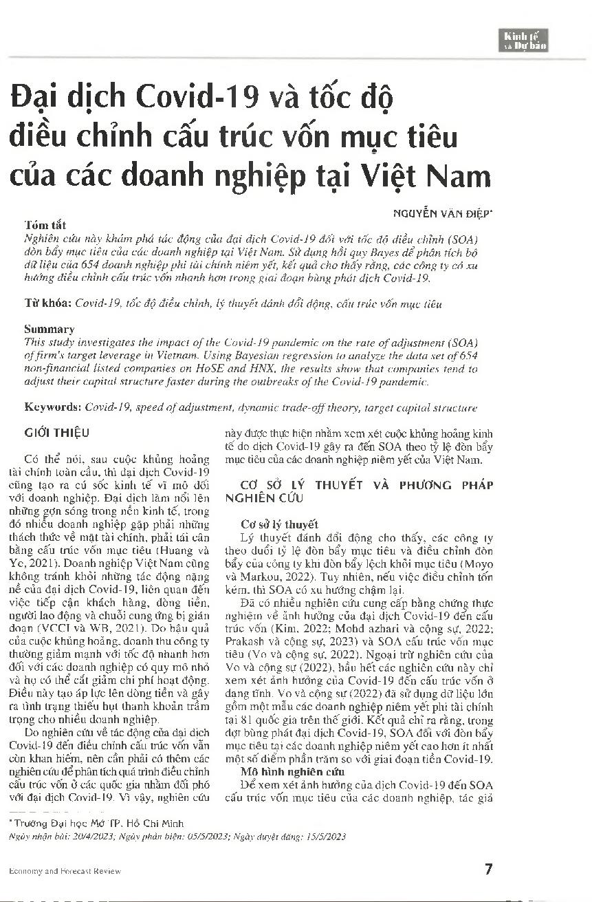 Đại dịch Covid-19 và tốc độ điều chỉnh cấu trúc vốn mục tiêu của các doanh nghiệp tại Việt Nam