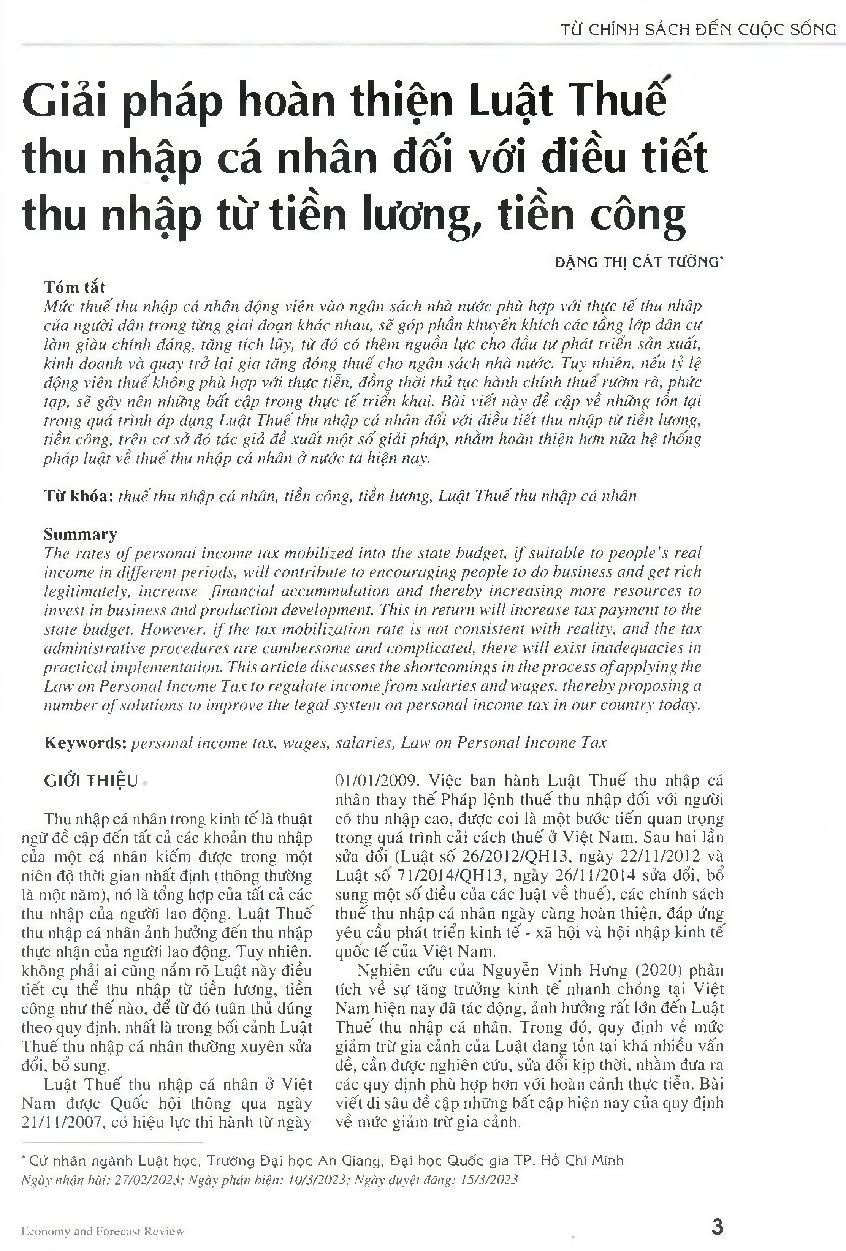Giải pháp hoàn thiện Luật Thuế thu nhập cá nhãn đối với điều tiết thu nhập từ tiền lương, tiền công