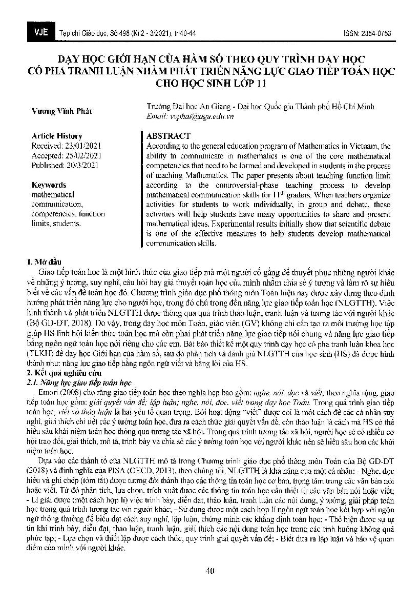 Dạy học giới hạn của hàm số theo quy trình Dạy học có pha tranh luận nhằm phát triển năng lực giao tiếp toán học cho học sinh lớp 11