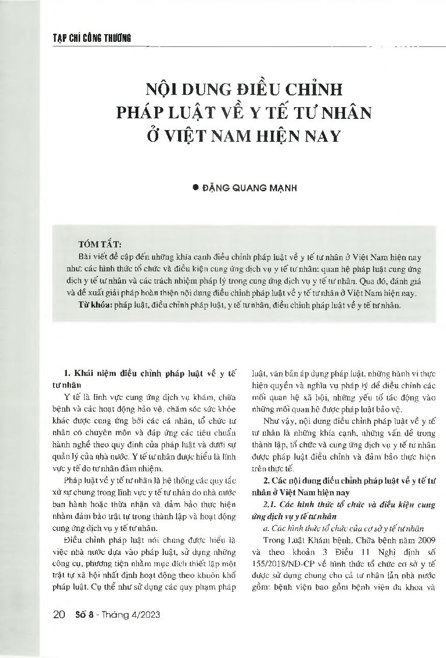 Nội dung điều chỉnh pháp luật về y tế tư nhân ở Việt Nam hiện nay