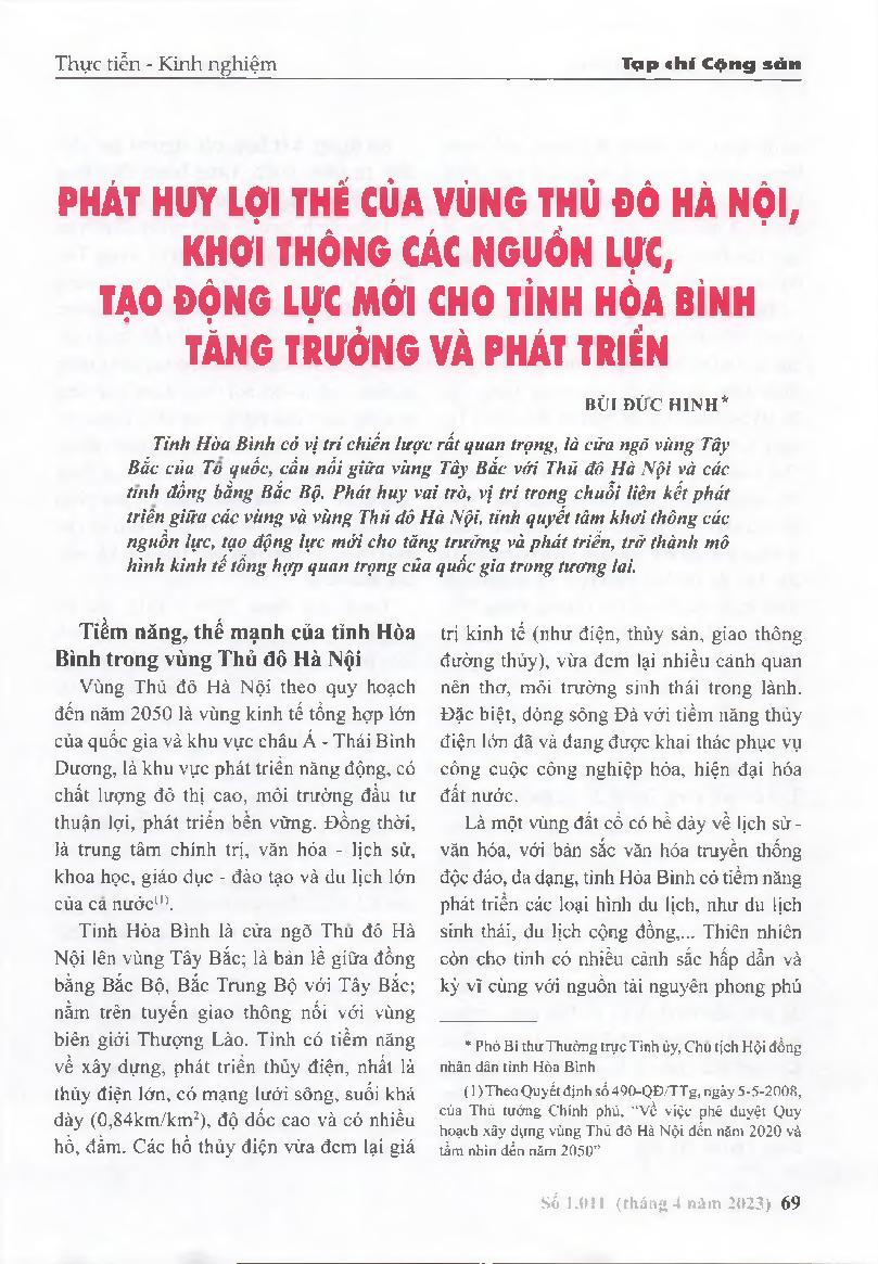 Phát huy lợi thế của vùng Thủ đô Hà Nội, khơi thông các nguồn lực, tạo động lực mới cho tỉnh Hòa Bình tăng trưởng và phát triển