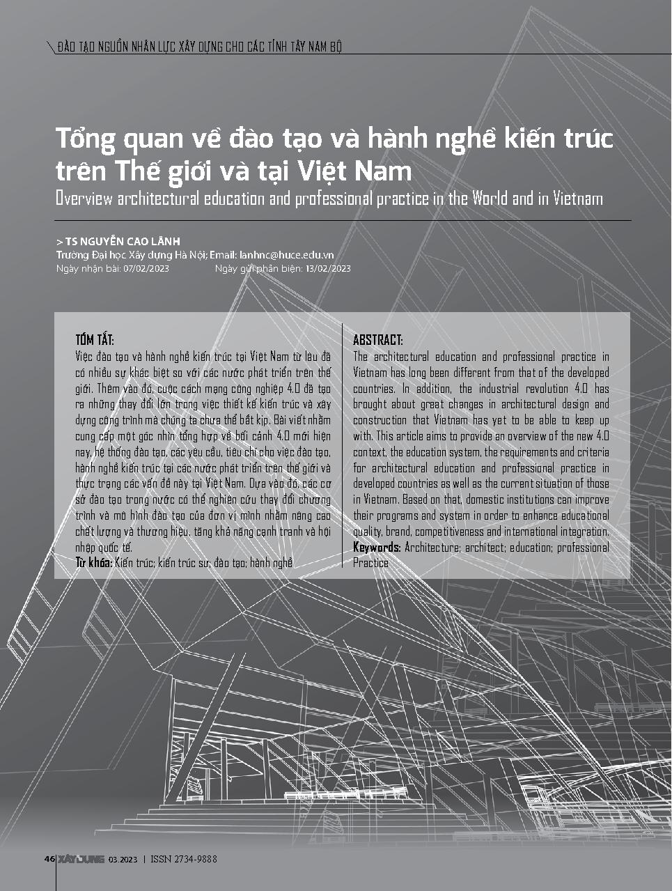 Tổng quan về đào tạo và hành nghề kiến trúc trên Thế giới và tại Việt Nam = Overview architectural education and professional practice in the World and in Vietnam