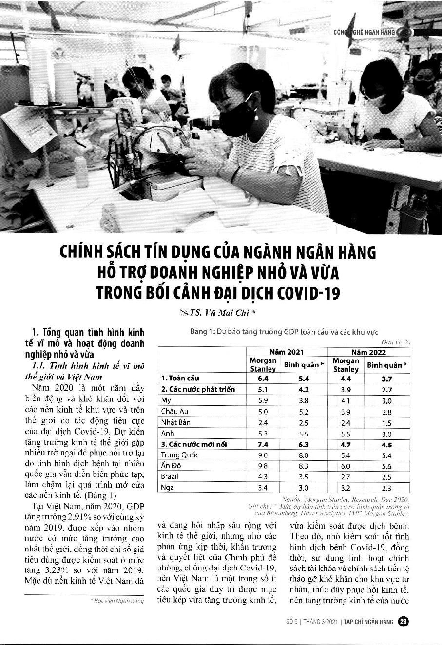 Chính sách tín dụng của ngành Ngân hàng hỗ trợ doanh nghiệp nhỏ và vừa trong bối cảnh đại dịch Covid-19