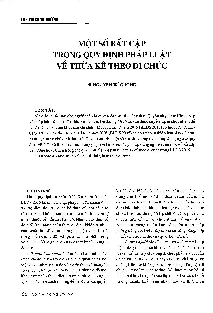 Một số bất cập trong quy định pháp luật về thừa kế theo di chúc = Some shortcomings in provisions on inheritance according to the will