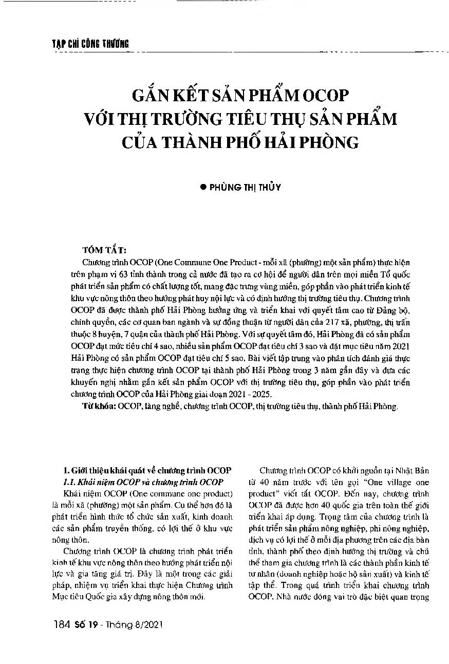 Gắn kết sản phẩm OCOP với thị trường tiêu thụ sản phẩm của thành phố Hải Phòng = Developing linkages for production and consumption of OCOP products in Hai Phong City