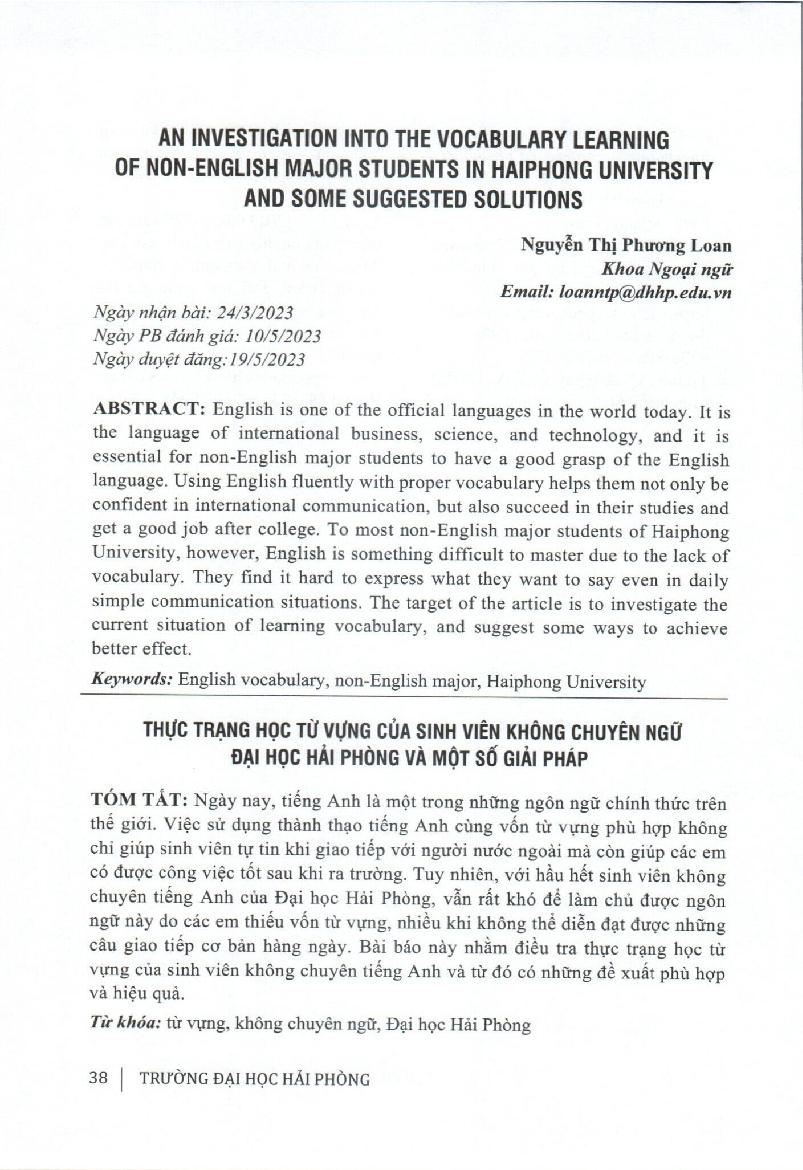 Thực trạng học từ vựng của sinh viên không chuyên ngữ đại học Hải Phòng và một số giải pháp