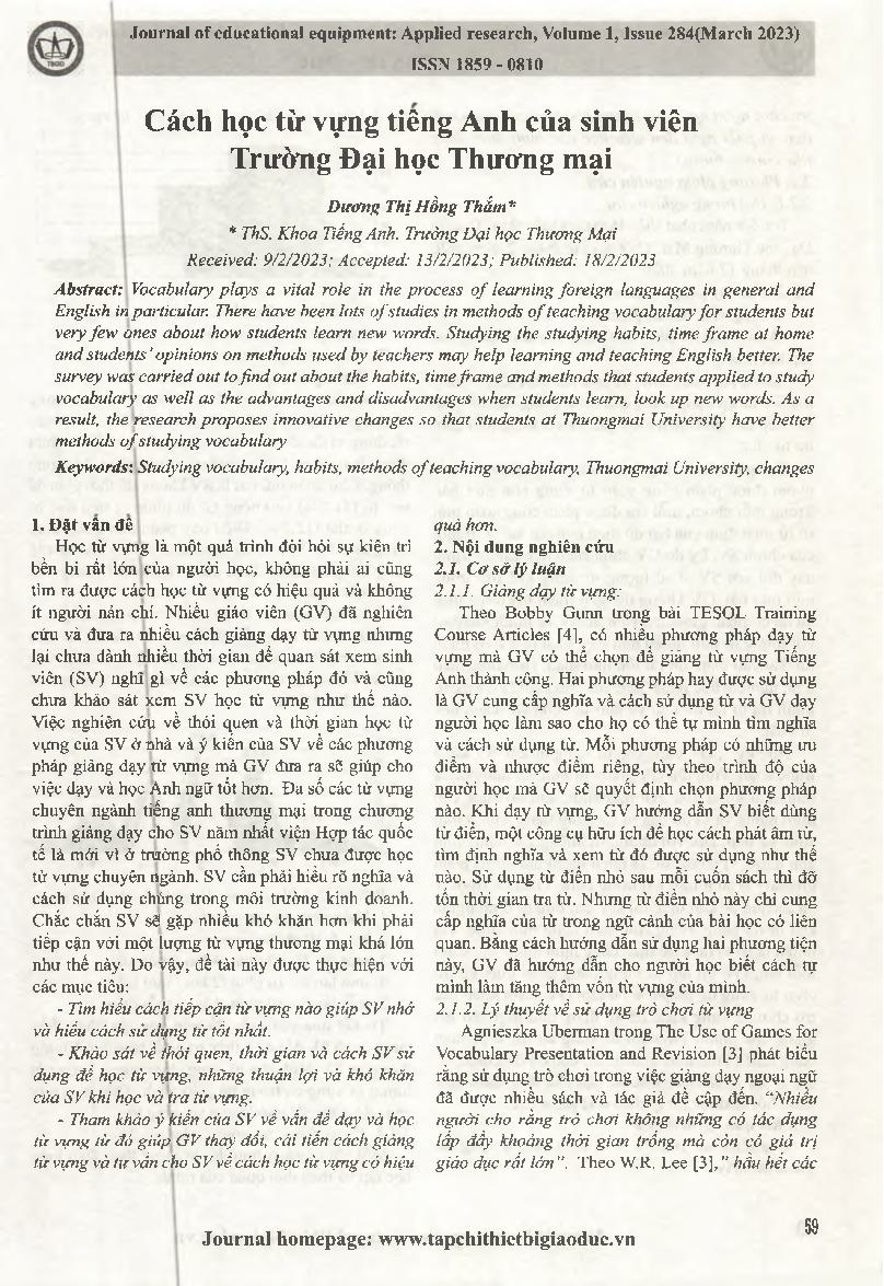 Cách học từ vựng tiếng Anh của sinh viên Trường Đại học Thương mại = English vocabulary learning among students at Thuongmai University.