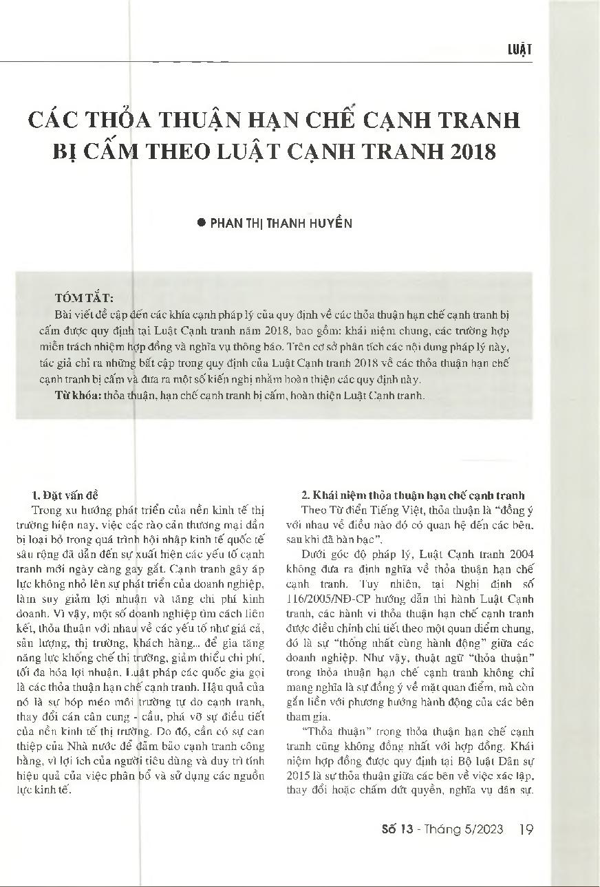 Các thỏa thuận hạn chế cạnh tranh bị cấm theo Luật Cạnh tranh 2018