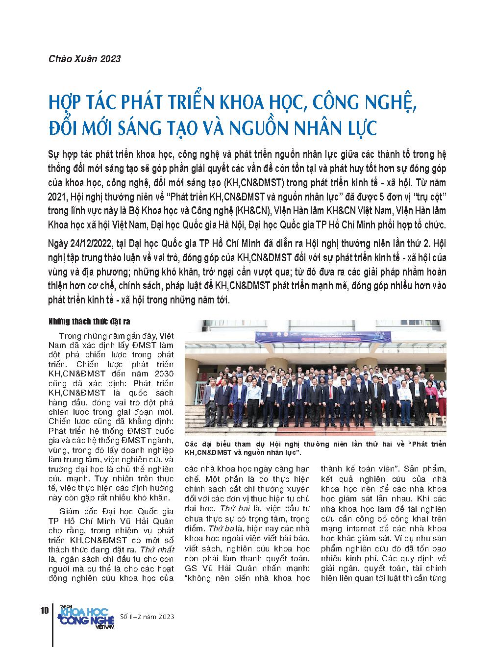 Hợp tác phát triển khoa khoa học, công nghệ, đổi mới sáng tạo và nguồn nhân lực