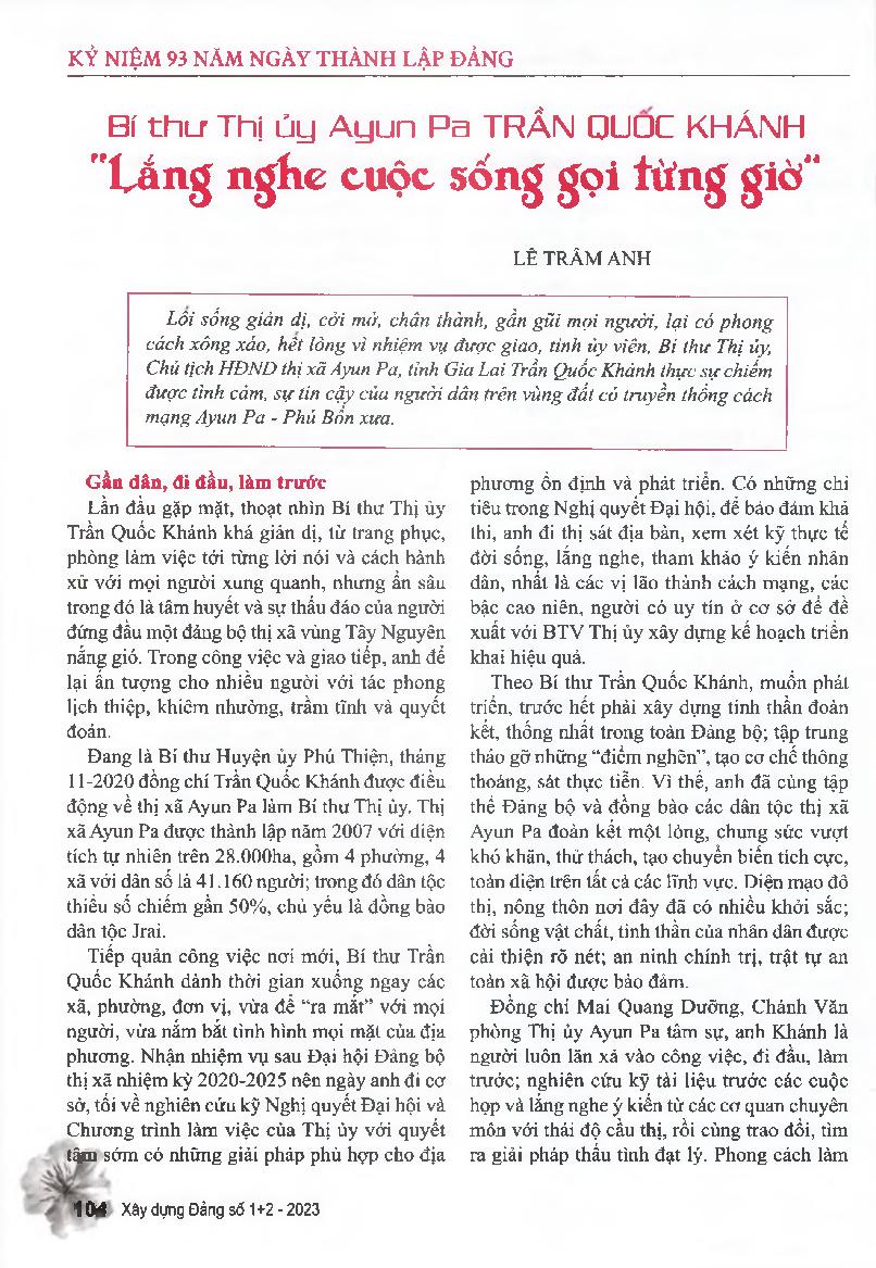 Bí thư Thị ủy Ayun Pa Trần Quốc Khánh "Lắng nghe cuộc sống gọi từng giờ"