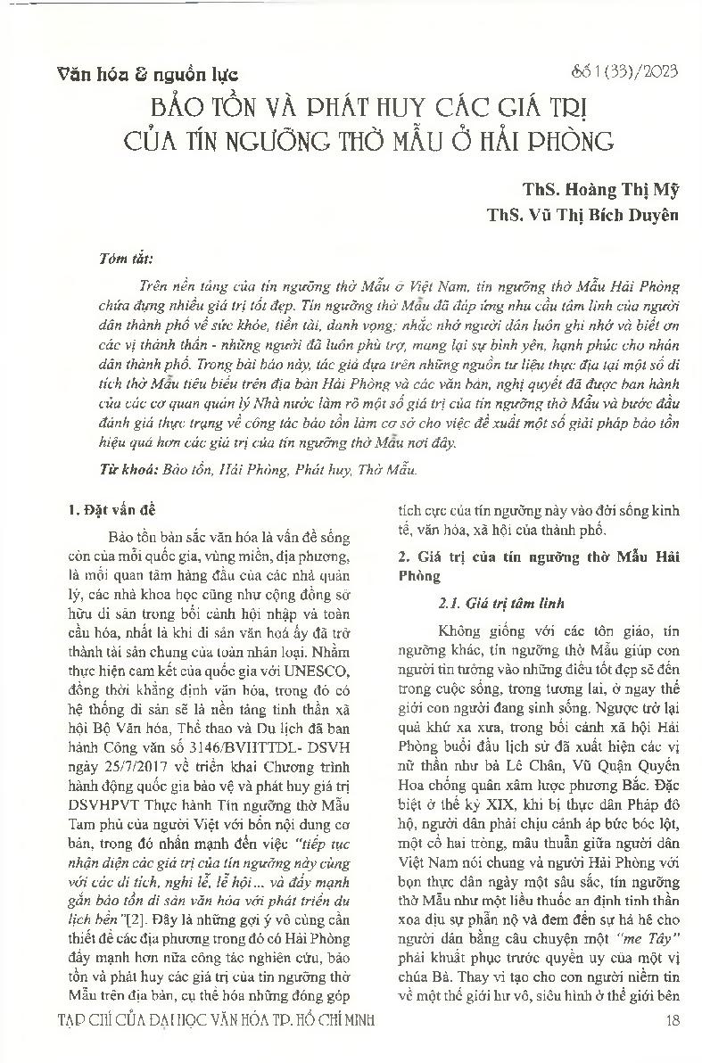 Bảo tồn và phát huy các giá trị của tín ngưỡng thờ mẫu ở Hải Phòng