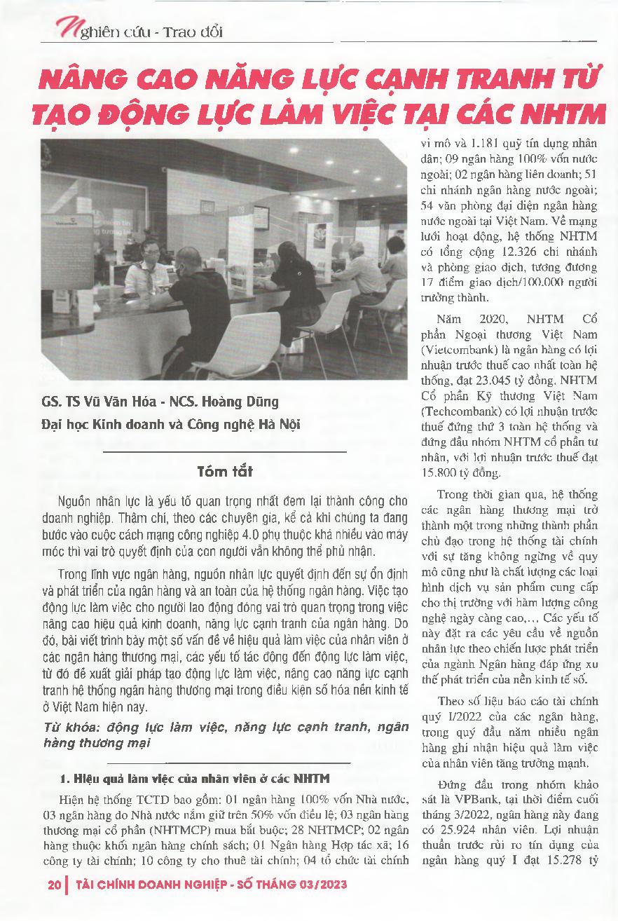 Nâng cao năng lực cạnh tranh từ tạo động lực làm việc tại các NHTM = Improve competitiveness by creating motivation to work at commercial banks