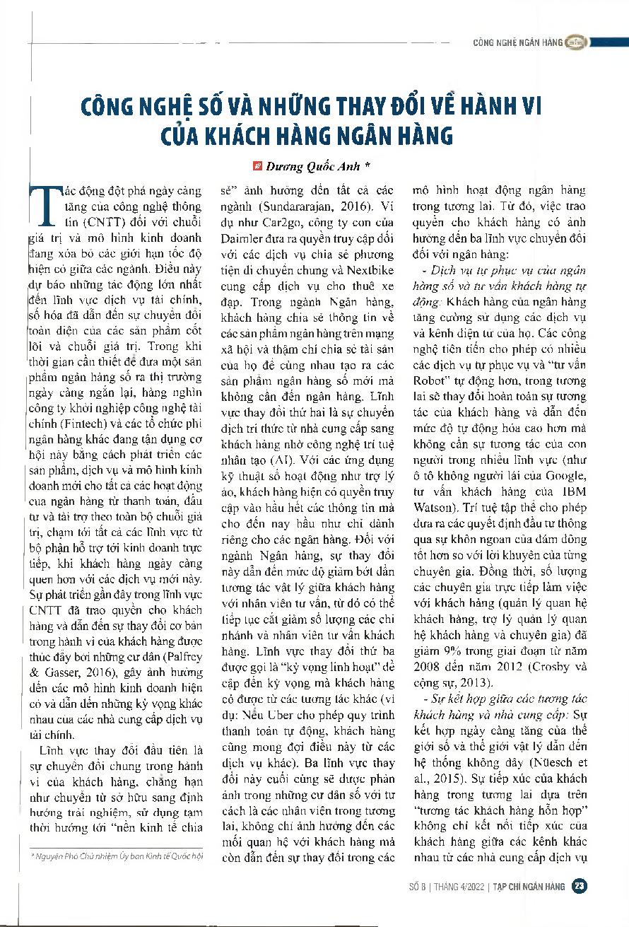 Công nghệ số và những thay đổi về hành vi của khách hàng ngân hàng = Digital technology and changes in banking customer behavior