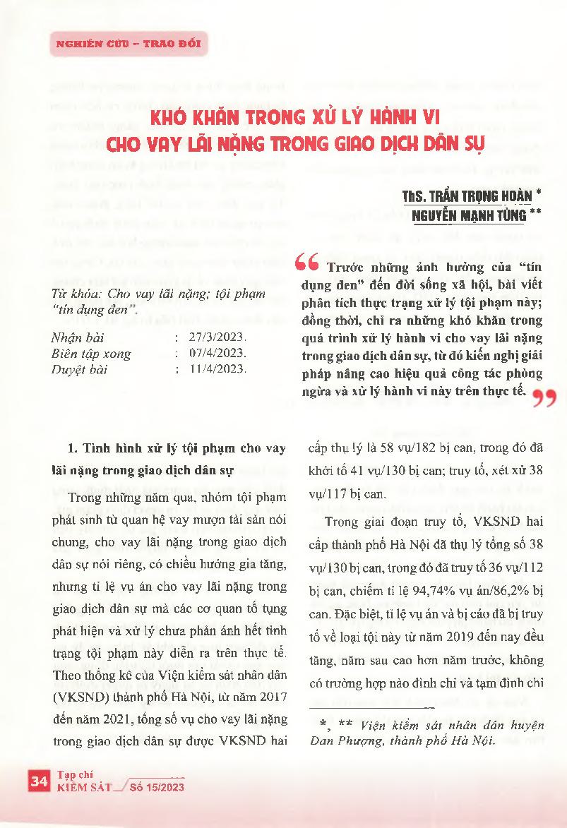 Khó khăn trong xử lý hành vi cho vay lãi nặng trong giao dịch dân sự