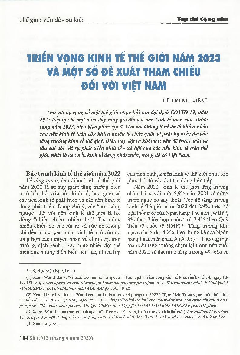 Triển vọng kinh tế thế giới năm 2023 và một số đề xuất tham chiếu đối với Việt Nam