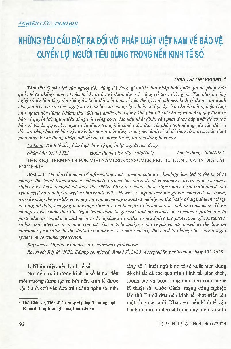 Những yêu cầu đặt ra đối với pháp luật Việt Nam về bảo vệ quyền lợi người tiêu dùng trong nền kinh tế số = Improving the provisions on members of cooperative economic organizations with legal status
