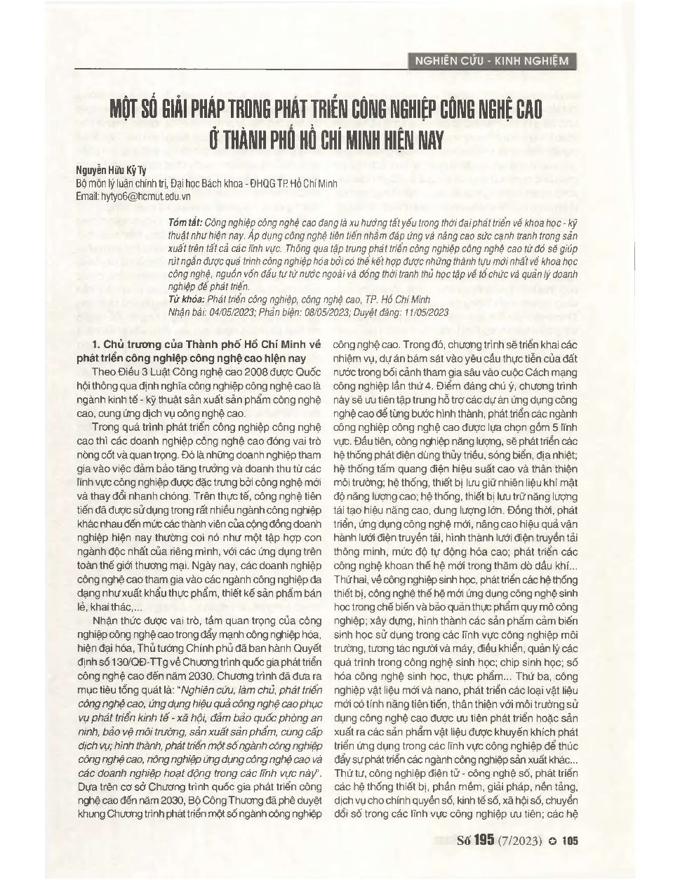 Một số giải pháp trong phát triển công nghiệp công nghệ cao ở thành phố Hồ Chí Minh hiện nay