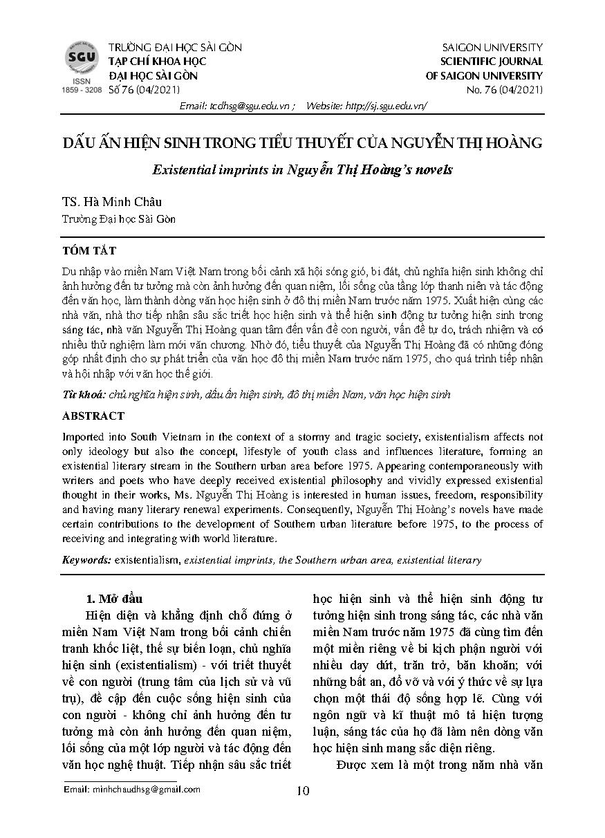 Dấu ấn hiện sinh trong tiểu thuyết của Nguyễn Thị Hoàng = Existential imprints in Nguyen Thi Hoang’s novels