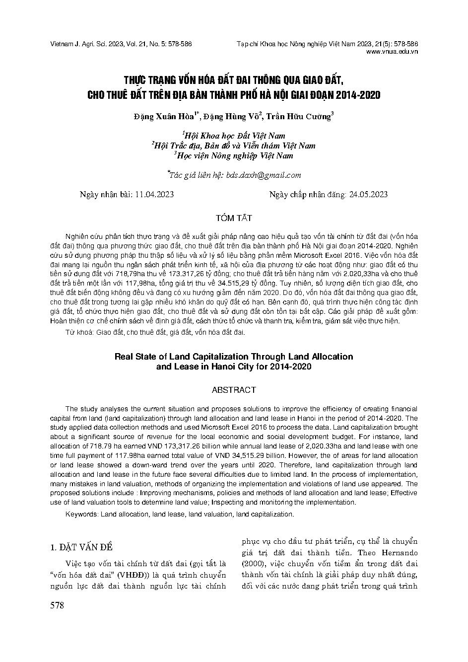 Thực trạng vốn hóa đất đai thông qua giao đất, cho thuê đất trên địa bàn thành phố Hà Nội giai đoạn 2014-2020