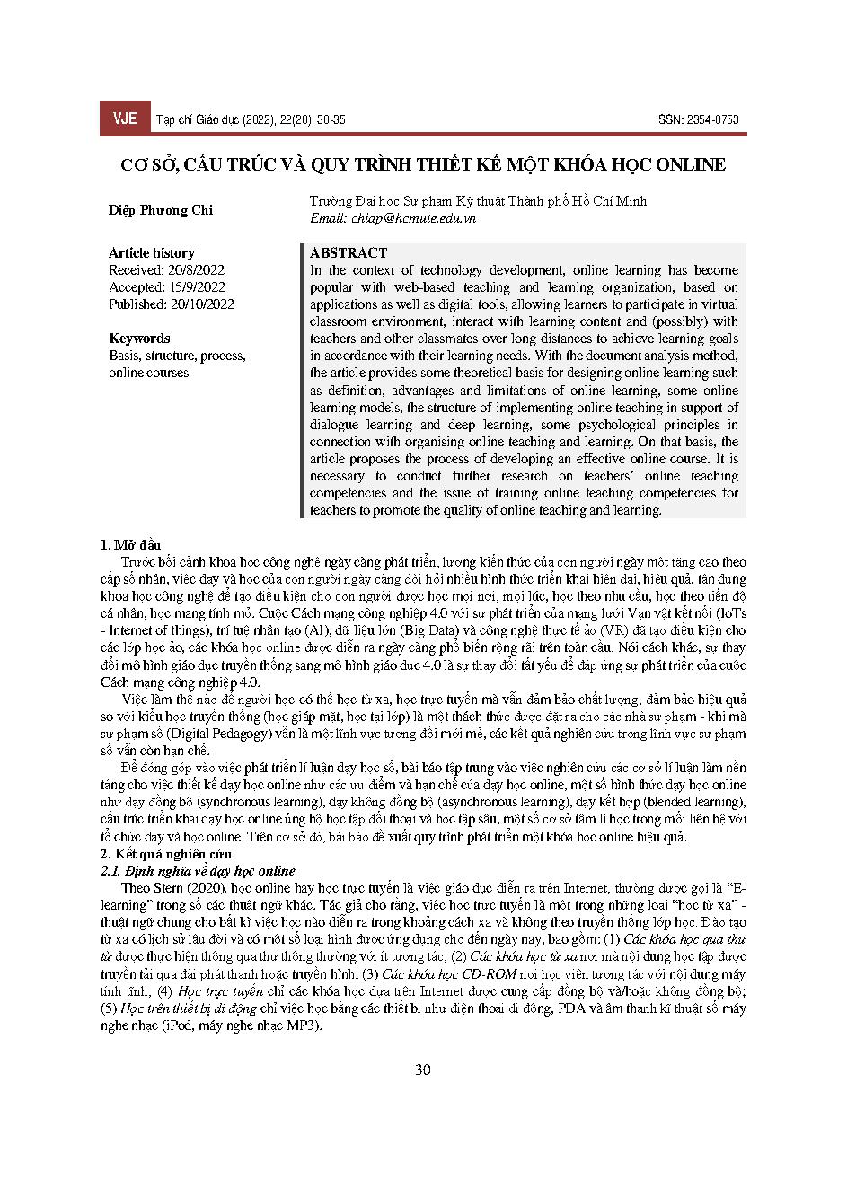 Cơ sở, cấu trúc và quy trình thiết kế một khóa học online = The basis, structure and design process of an online course