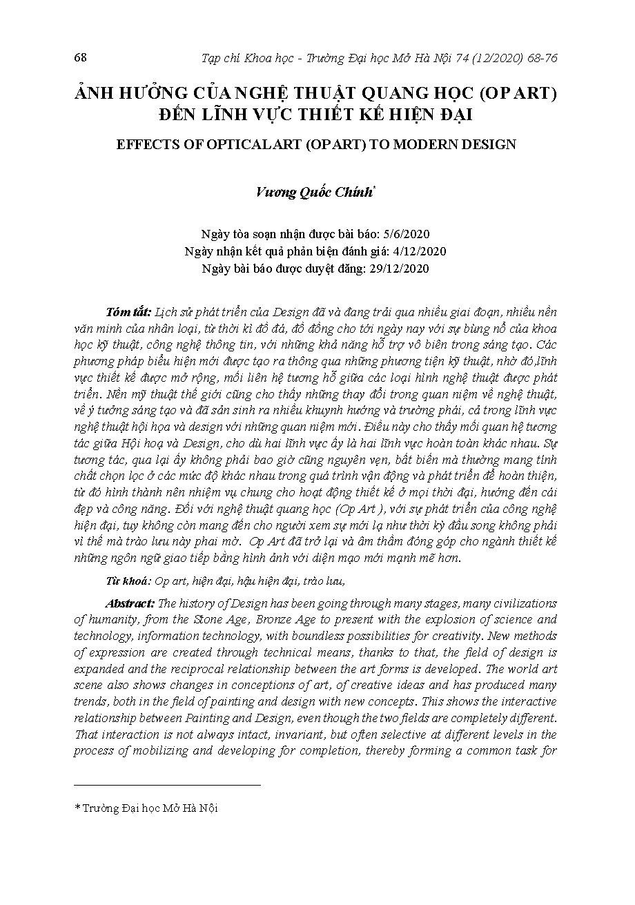 Ảnh hưởng của nghệ thuật quang học (Op Art) đến lĩnh vực thiết kế hiện đại = Effects of optical art (Op Art) to modern design