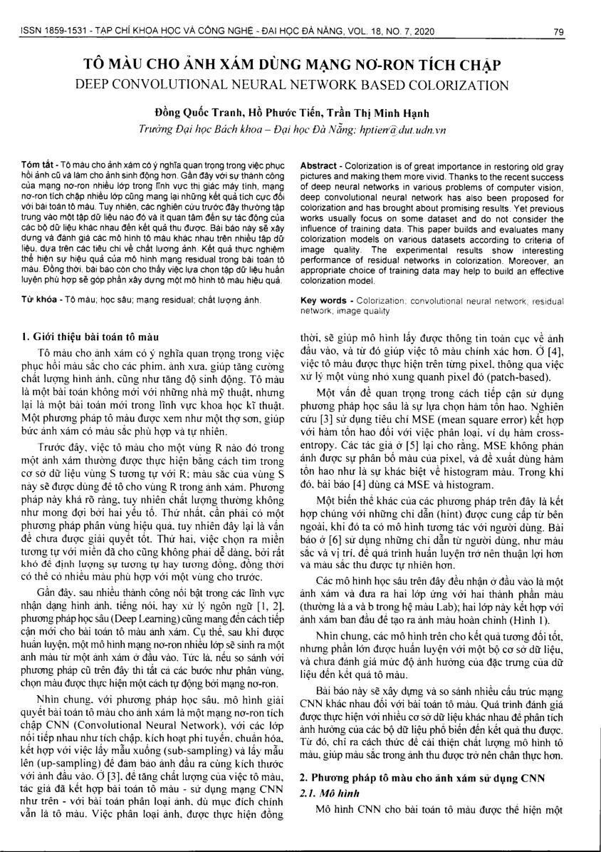 Tô màu cho ảnh xám dùng mạng nơ-ron tích chập = Deep convolutional neural network based colorization