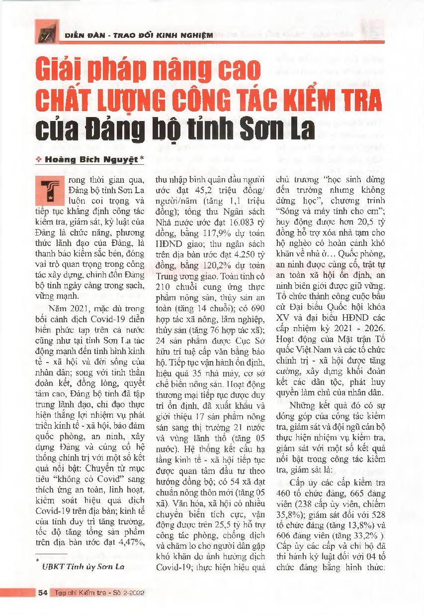 Giải pháp nâng cao chất lượng công tác kiểm tra của Đảng bộ tỉnh Sơn La