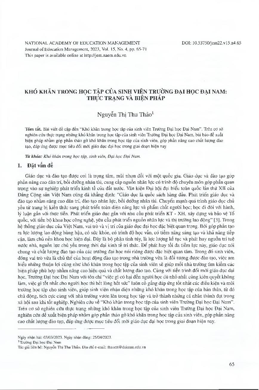 Khó khăn trong học tập của sinh viên trường đại học đại nam: thực trạng và biện pháp = Difficulties in learning of students at Southern University: current situation and measures