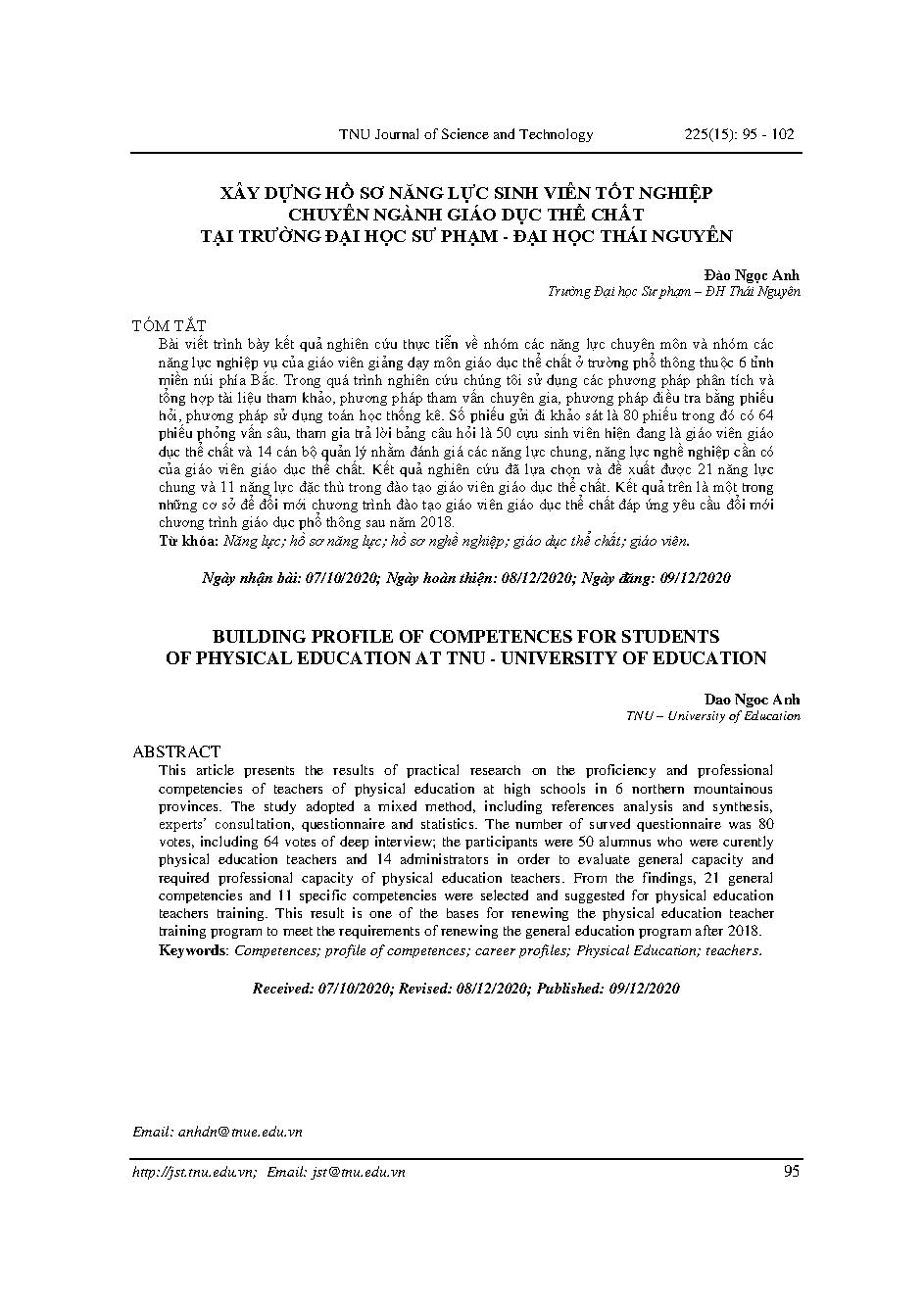 Xây dựng hồ sơ năng lực sinh viên tốt nghiệp chuyên ngành giáo dục thể chất tại Trường đại học Sư phạm - Đại học Thái Nguyên = Building profile of competences for students of physical education at TNU - university of education