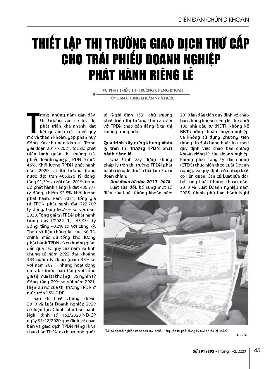 Thiết lập thị trường giao dịch thứ cấp cho trái phiếu doanh nghiệp phát hành riêng lẻ = To build secondary trading market for private placement corporate bonds