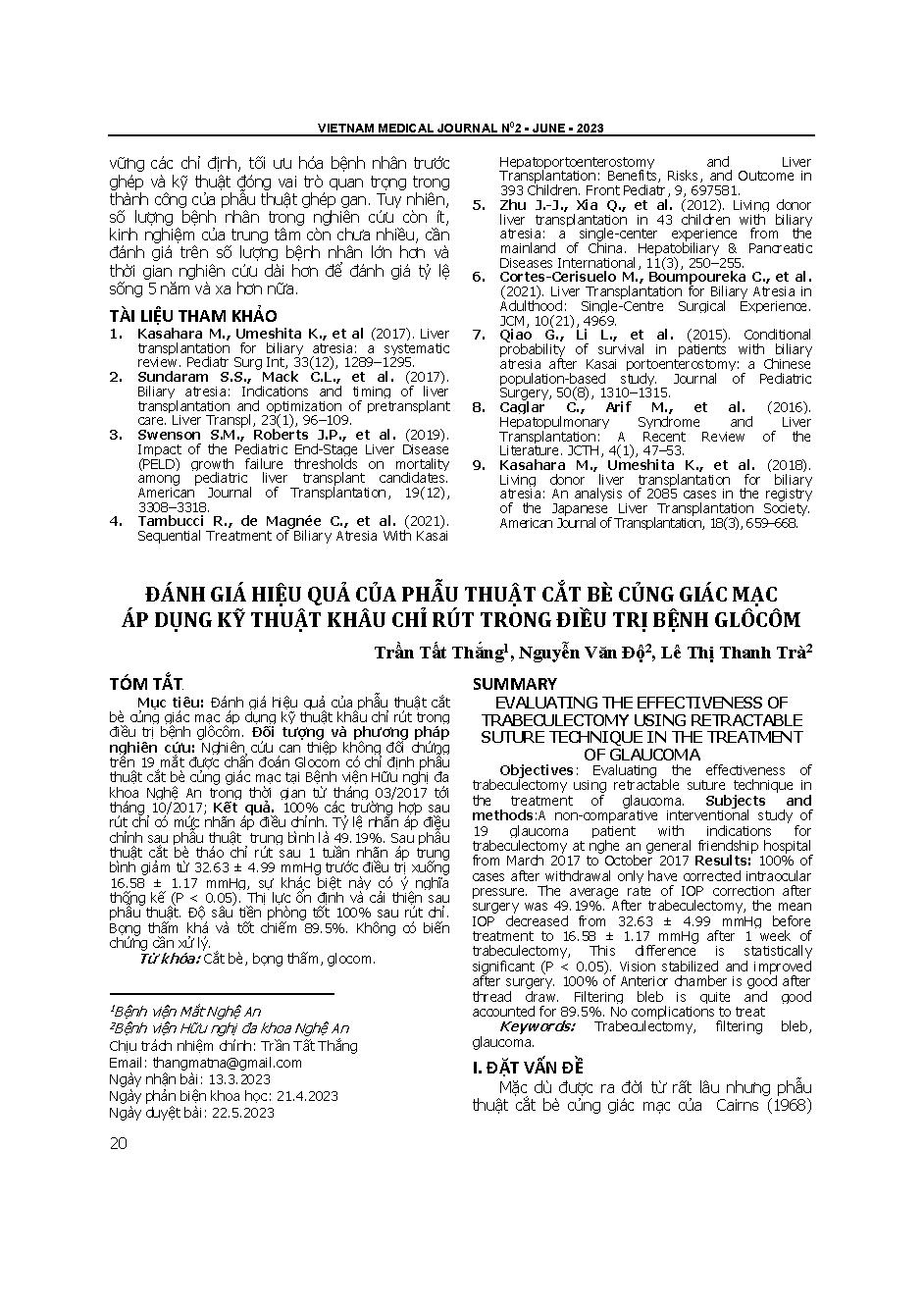 Đánh giá hiệu quả của phẫu thuật cắt bè củng giác mạc áp dụng kỹ thuật khâu chỉ rút trong điều trị bệnh glôcôm = Evaluating the effectiveness of trabeculectomy using retractable suture technique in the treatment of glaucoma