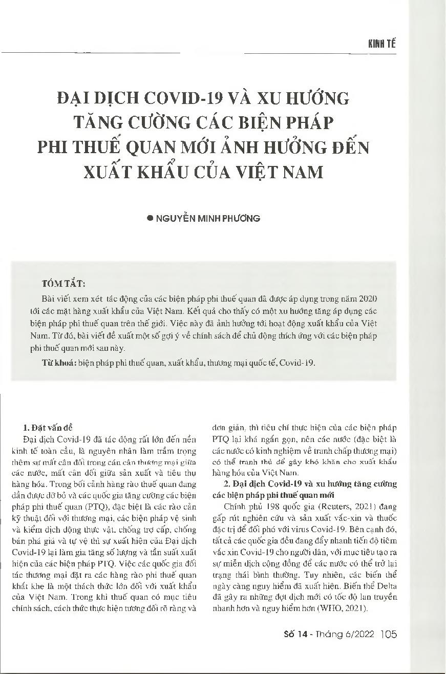 Đại dịch Covid-19 và xu hướng tăng cường các biện pháp phi thuế quan mới ảnh hưởng đến xuất khẩu của Việt Nam = The COVID-19 pandemic and the increasingly use of new non-tariff measures affecting Vietnam&; 39;s exports