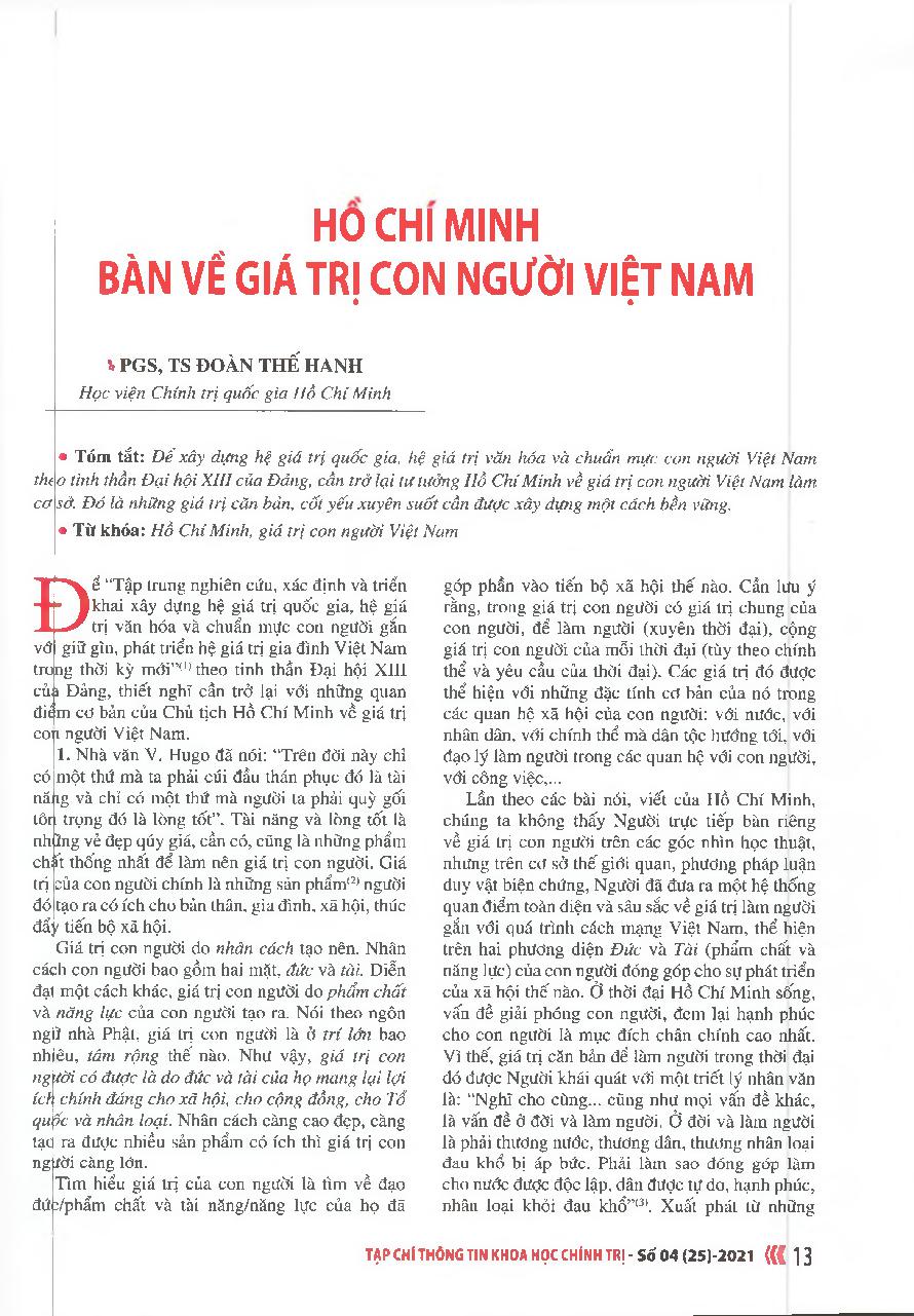 Hồ Chí Minh bàn về giá trị con người Việt Nam