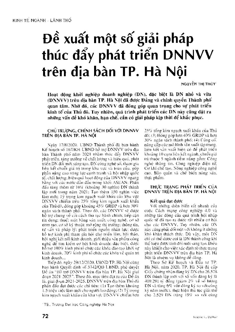 Đề xuất một số giải pháp thúc đẩy phát triển doanh nghiệp nhỏ và vừa trên địa bàn TP. Hà Nội