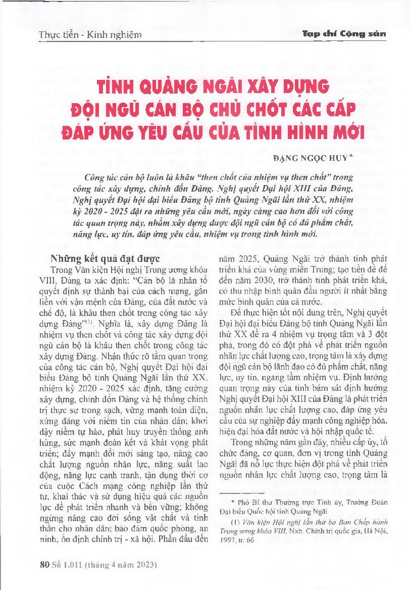 Tỉnh Quảng Ngãi xây dựng đội ngũ cán bộ chủ chốt các cấp đáp ứng yêu cầu của tình hình mới