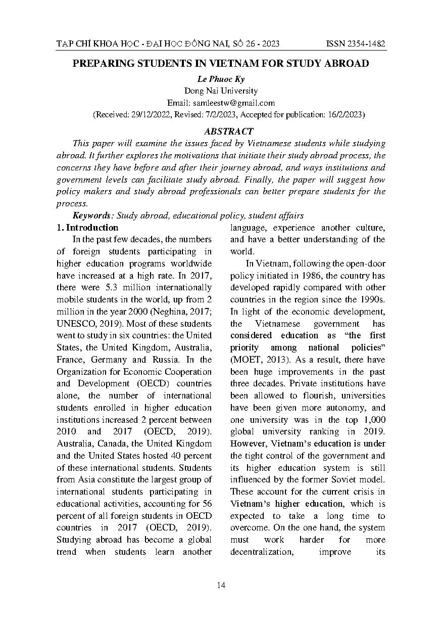 Tạo điều kiện cho sinh viên Việt Nam du học nước ngoài = Preparing students in vietnam for study abroad