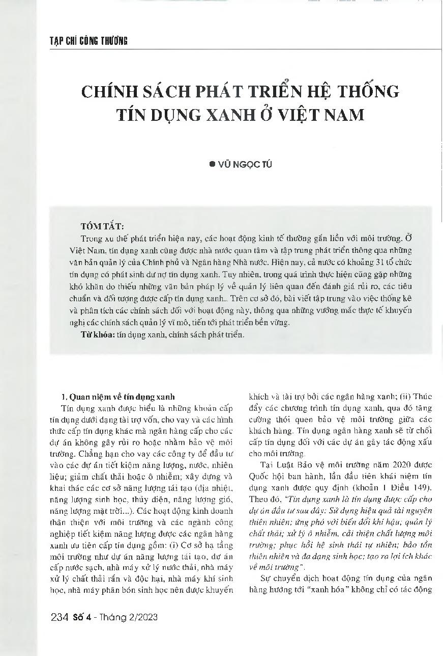 Chính sách phát triển hệ thống tín dụng xanh ở Việt Nam = Policies for the development of green credit system in Vietnam