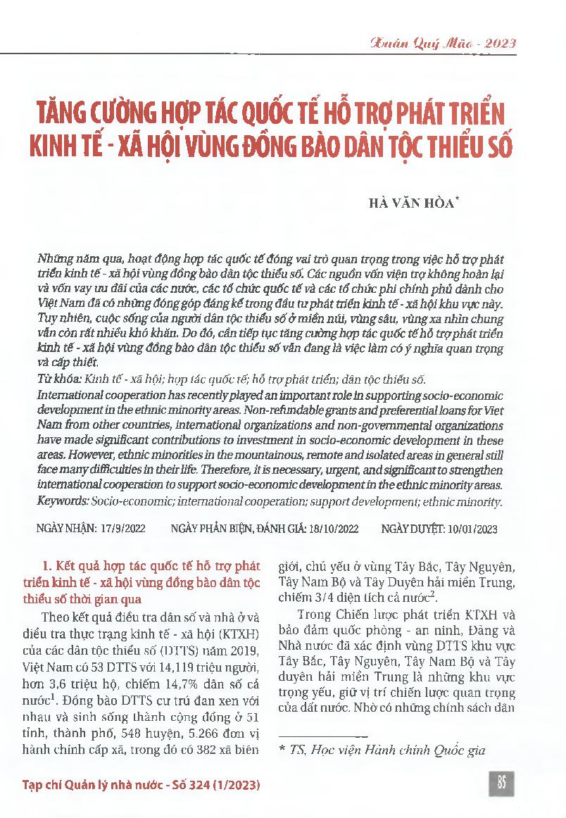 Tăng cường hợp tác quốc tế hỗ trợ phát triển kinh tế - xã hội vùng đồng bào dân tộc thiểu sổ = Strengthening of international cooperation to support socio-economic development in the ethnic minority areas
