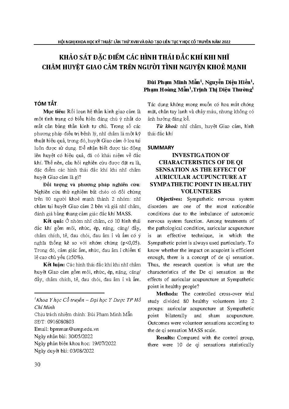 Khảo sát đặc điểm các hình thái đắc khí khi nhĩ châm huyệt giao cảm trên người tình nguyện khoẻ mạnh