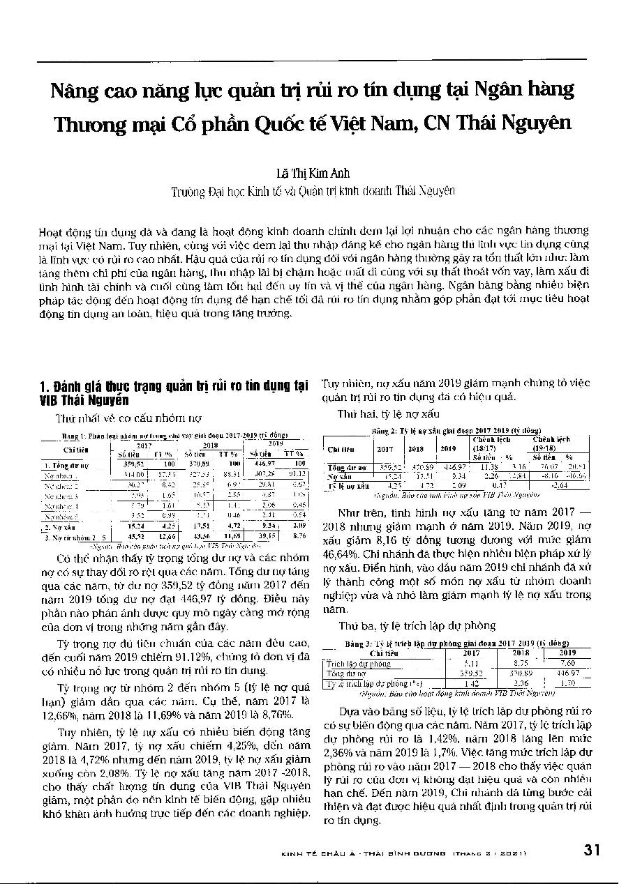 Nâng cao năng lực quản trị rủi ro tín dụng tại Ngân hàng Thương mại Cổ phần Quốc tế Việt Nam, CN Thái Nguyên