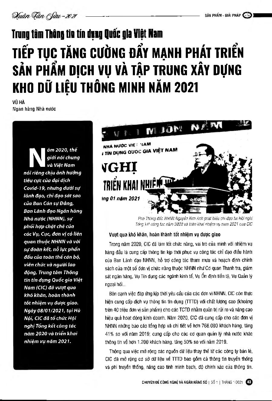 Trung tâm Thông tin Tín dụng Quốc gia Việt Nam tiếp tục tăng cường đẩy mạnh phát triển sản phẩm dịch vụ và tập trung xây dựng kho dữ liệu thông minh năm 2021