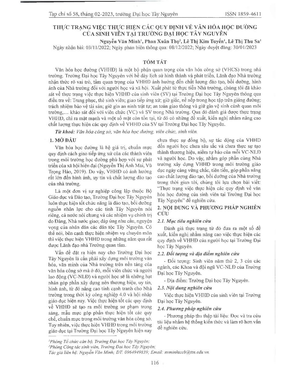 Thực trạng việc thực hiện các quy định về văn hóa học đường của sinh viên tại Trường Đại học Tây Nguyên = The current situation of implementing school culture regulations among students at Tay Nguyen University