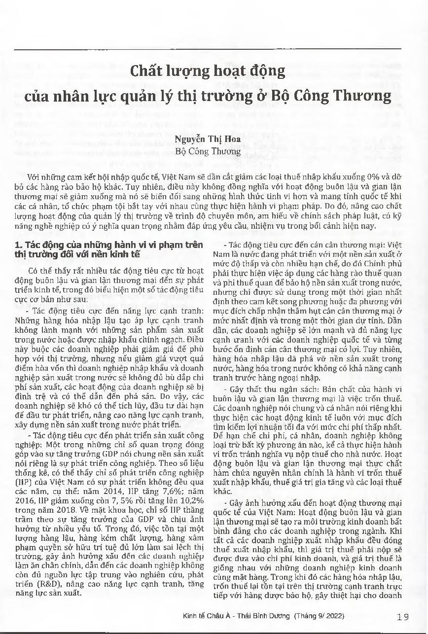 Chất lượng hoạt động của nhân lực quản lý thị trường ử Bộ Công Thương