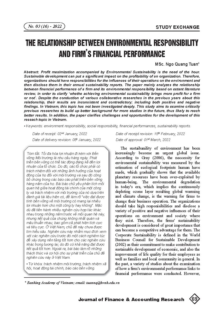 Mối quan hệ giữa trách nhiệm với môi trường và hiệu quả tài chính của doanh nghiệp = The relationship between environmental responsibility and firm’s financial performance