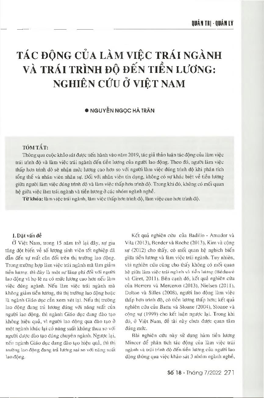 Tác động của làm việc trái ngành và trái trình độ đến tiền lương: Nghiên cứu ở Việt Nam = Impacts of job mismatch on wage: Case study in Vietnam