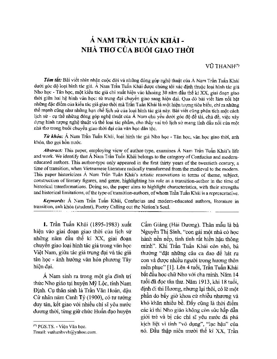 Á Nam Trần Tuấn Khải - nhà thơ của buổi giao thời = Á Nam Trần Tuấn Khải - A poet of the Transition Time