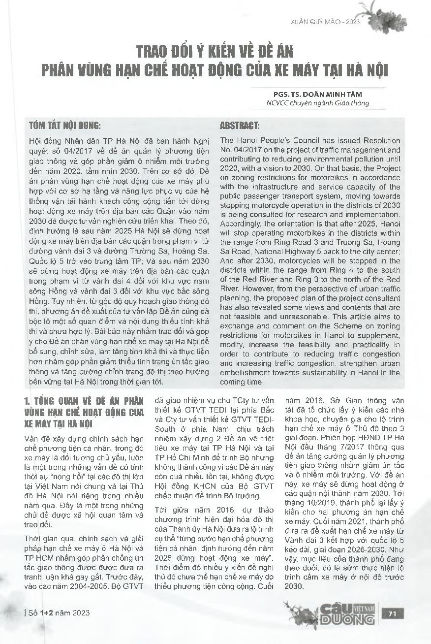 Trao đổi ý kiến về đề án phân vùng hạn chế hoạt động của xe máy tại Hà Nội = Exchange of opinions on limiting zone project for activities of motorcycles in Hanoi