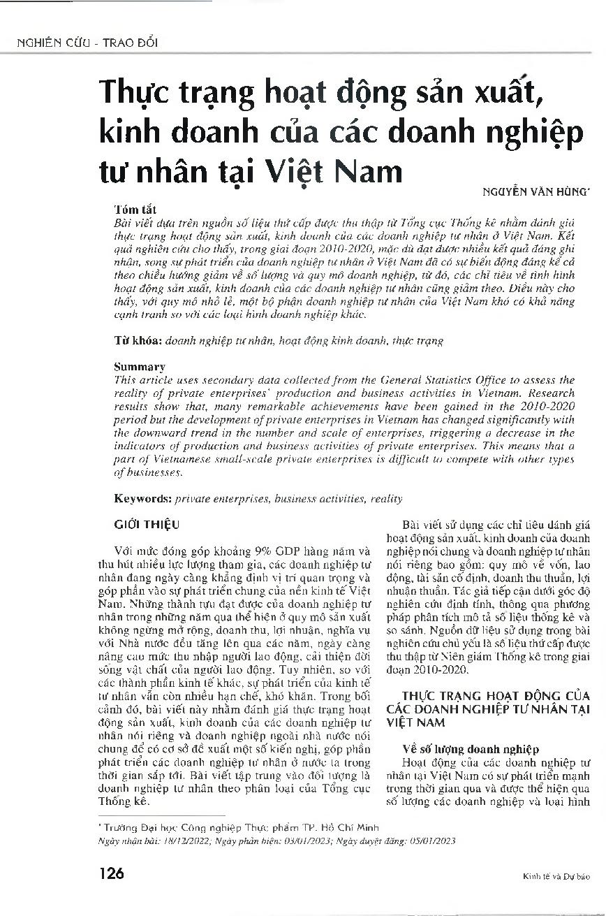 Thực trạng hoạt động sản xuất, kinh doanh của các doanh nghiệp tư nhân tại Việt Nam = Reality of production and business activities of private enterprises in Vietnam