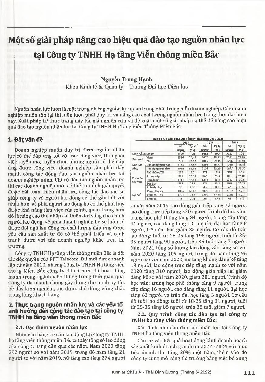 Một số giải pháp nâng cao hiệu quả đào tạo nguồn nhân lực tại Công ty TNHH Hạ tầng Viễn thông miền Bắc