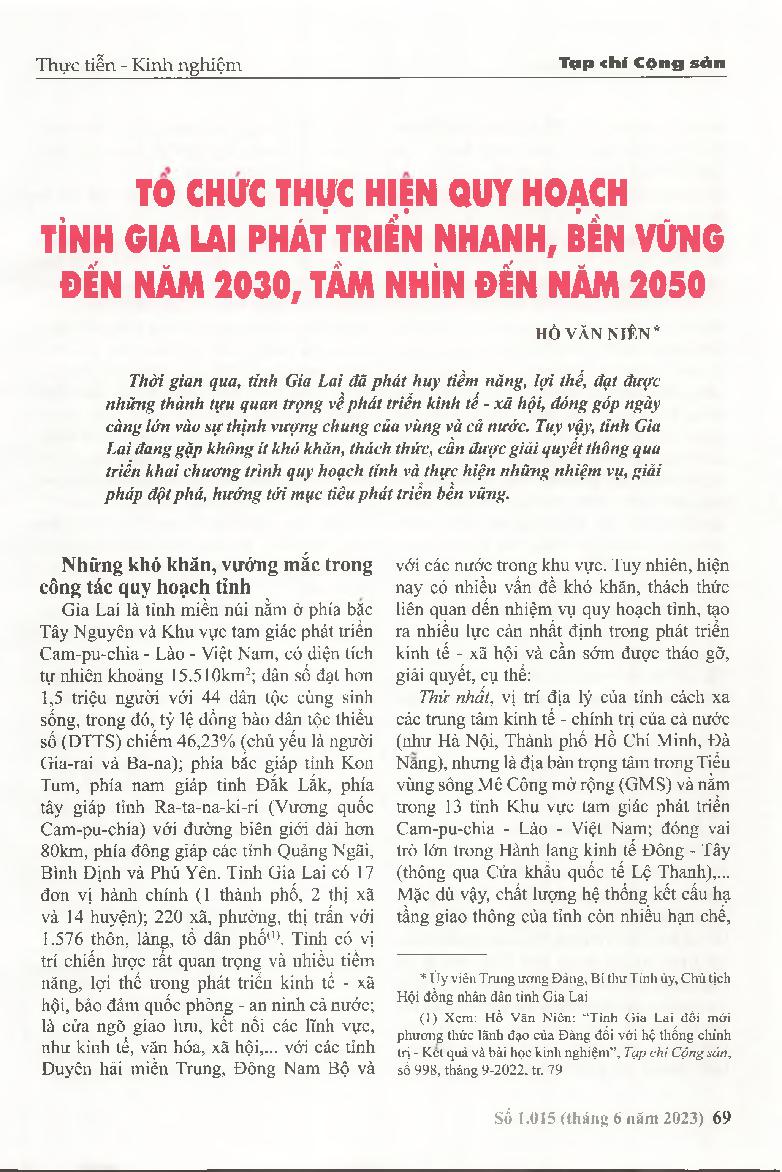 Tổ chức thực hiện quy hoạch tỉnh Gia Lai phát triển nhanh, bền vững đến năm 2030, tầm nhìn đến năm 2050